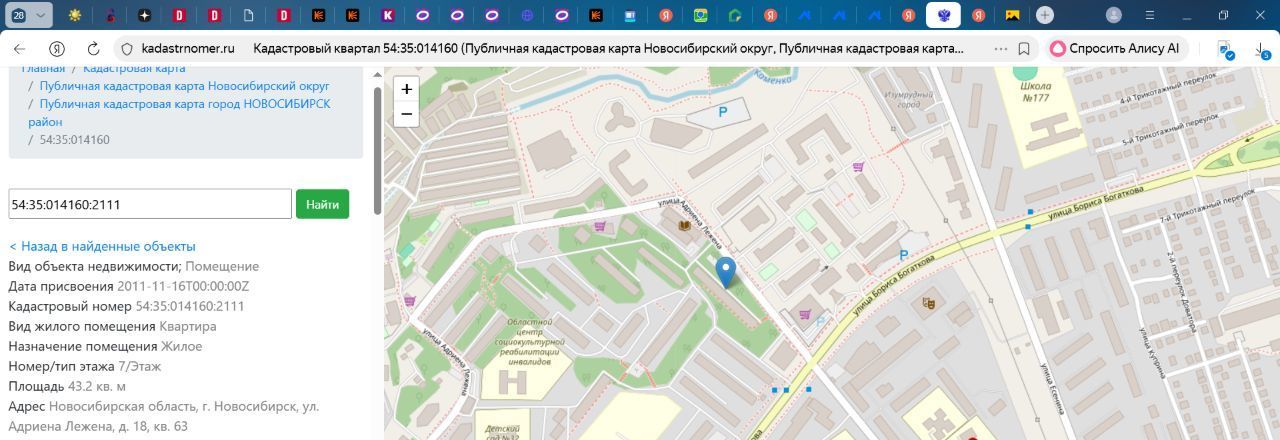 2-к кв. Новосибирская область, Новосибирск ул. Адриена Лежена, 18 (43.2 м²)