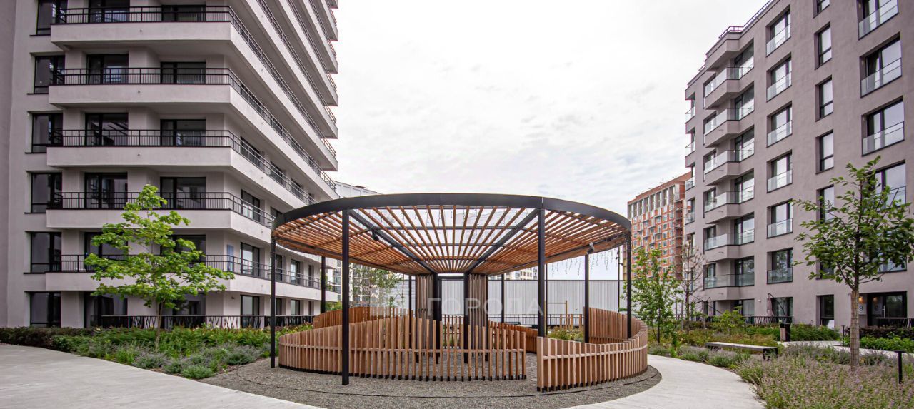 Все дома квартала имеют общий принцип организации дворов: они расположены на крыше паркинга и отгорожены от улицы. Так обеспечивается их камерность и приватность.
