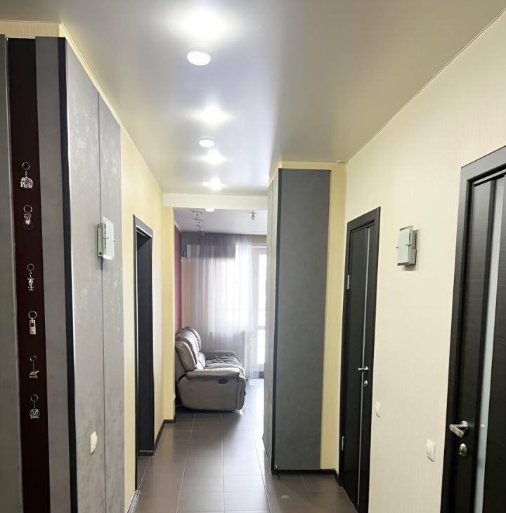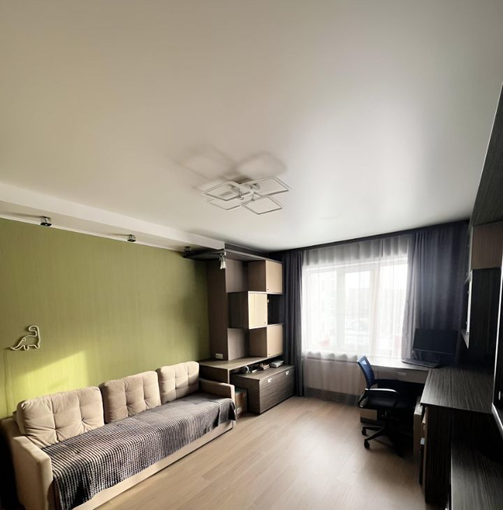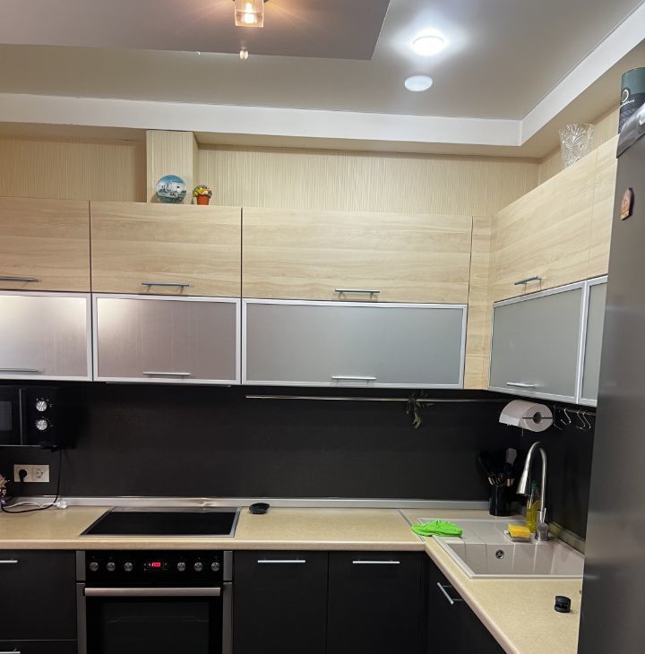Остается практически все для комфортной жизни: современный кухонный гарнитур, вместительные шкафы, гардины, стильные светильники, водонагреватель, столы и многое другое! Балкон застеклен и обшит, окна в пол обеспечивают много света.