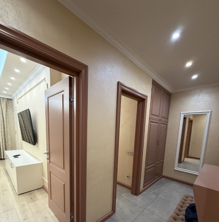 Дизайнерский ремонт, дорогие отделочные материалы. В квартире установлена современная техника: холодильник, телевизор, посудомоечная и стиральная машины. Санузел раздельный, с ванной. Из окон открывается вид на улицу и во двор.