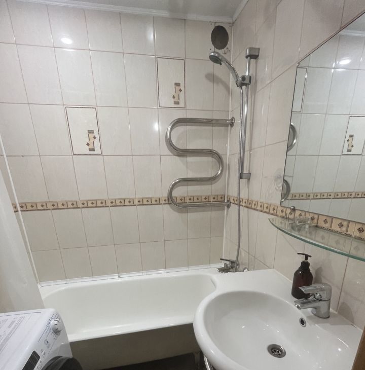 В квартире есть всё необходимое для комфортной жизни. Свежий косметический ремонт, аккуратная ванная комната с ванной, отдельный санузел. На кухне и в комнате установлена мебель. Из техники есть холодильник, телевизор и стиральная машина.