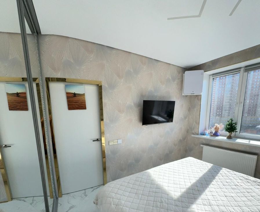 В квартире сделан дизайнерский ремонт, который создаёт атмосферу комфорта и уюта. Просторная гостиная и спальня полностью меблированы. На кухне есть вся необходимая мебель и техника, включая холодильник и кондиционер. В ванной комнате установлена современная душевая кабина, а также есть стиральная машина.