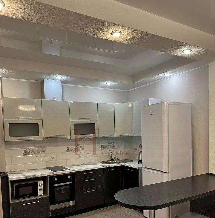 Квартира полностью укомплектована современной мебелью и бытовой техникой, включая холодильник, стиральную машину, плиту и телевизор.