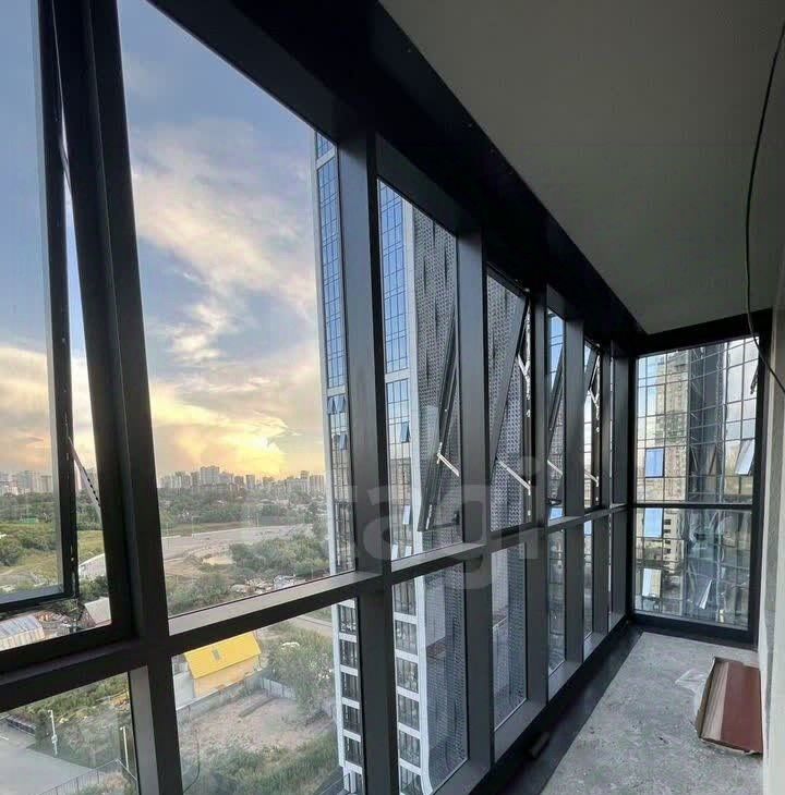 Балкон застеклён, окна во двор, хороший вид.