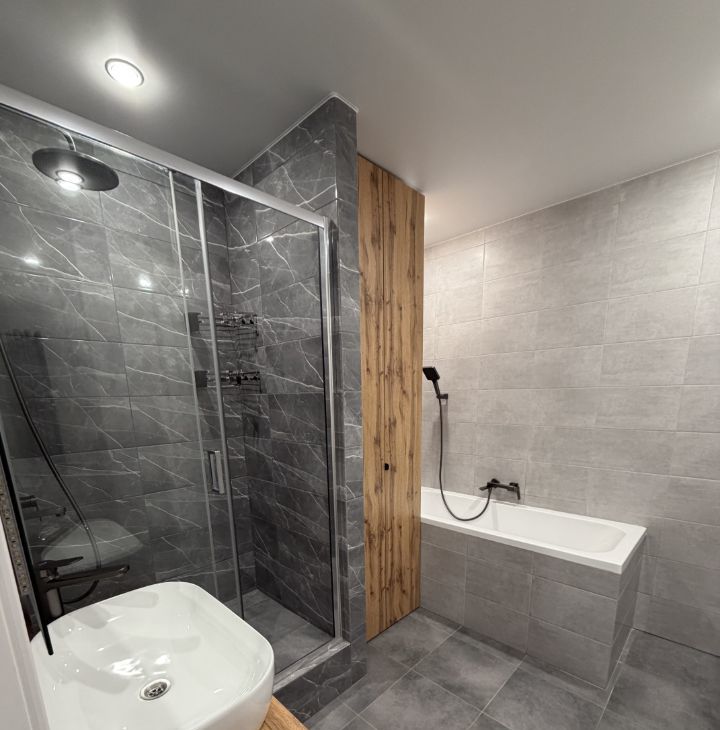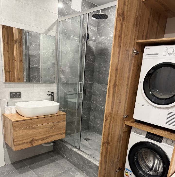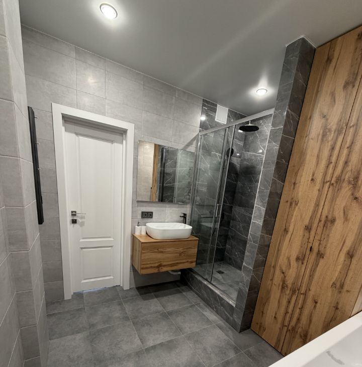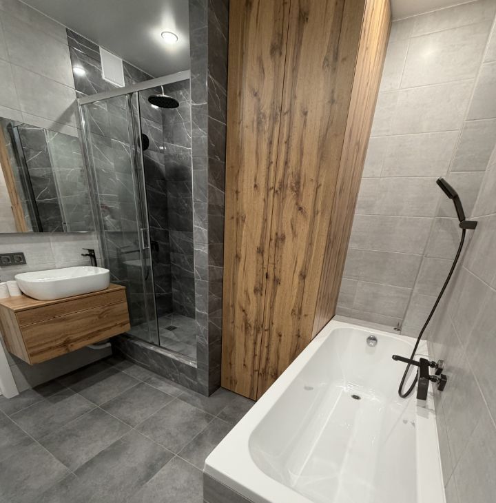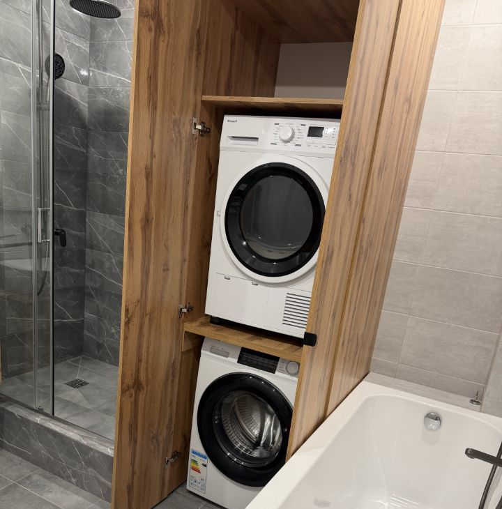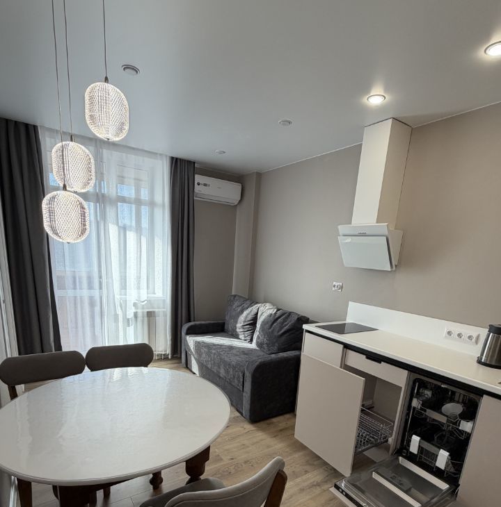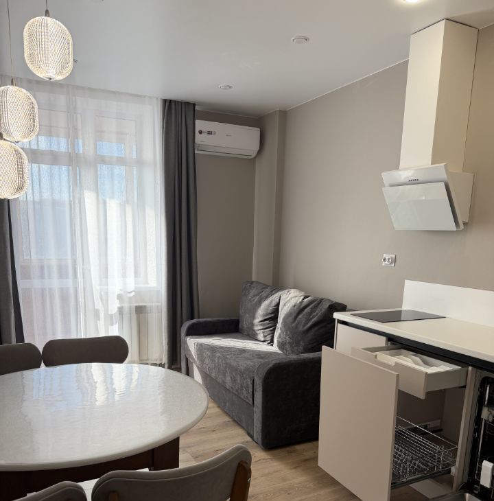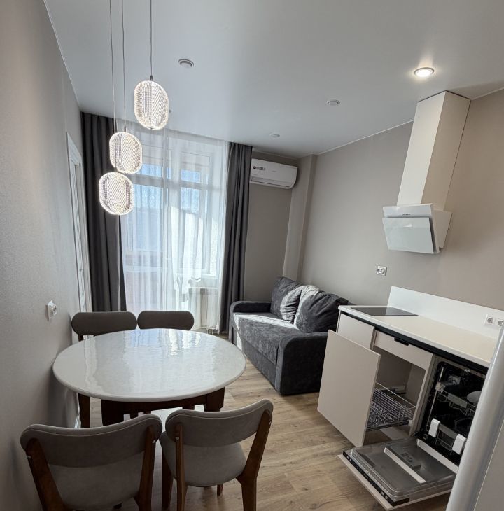 Укомплектована всей необходимой НОВОЙ мебелью и бытовой техникой .Всё для комфортного проживания: кондиционер, бойлер холодильник, посудомоечная машина, телевизор и стиральная машина и сушилка.В комнатах стоит мебель, поэтому вы можете сразу заселиться и начать жить. Ванная комната оборудована как ванной, так и душевой кабиной, что позволяет выбрать удобный способ принять водные процедуры. Комнаты просторные, изолированные. Санузел раздельный. Пять спальных мест( 2 кровати и диван), также есть встроенный вместительный шкаф в коридоре и просторная отдельная гардеробная комната.