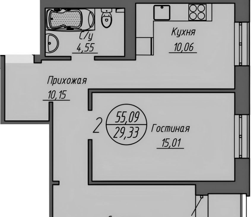 2-к кв. Новосибирская область, Новосибирск ул. Шевченко, 19/1 (53.0 м²)