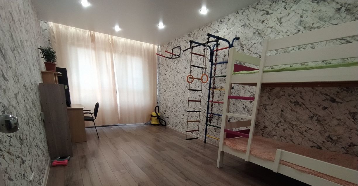Двухъярусная кровать стоит разобранная на балконе (при необходимости ее можно собрать), вместо нее сейчас диван.