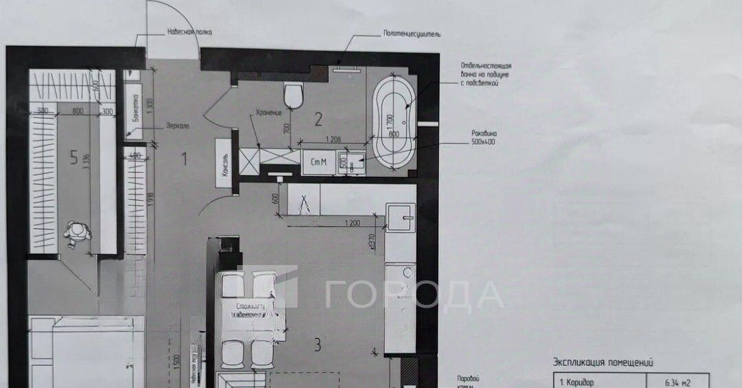 1-комнатная квартира: Новосибирск, улица Бориса Богаткова, 226к1 (34.4 м²)