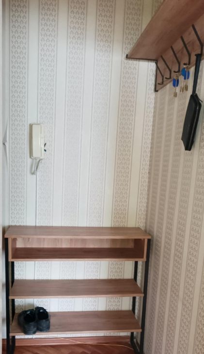 Квартира расположена на втором этаже панельного дома. В квартире выполнен косметический ремонт. Комнаты смежные, санузел совмещенный. Из мебели имеются шкафы и диван, а также телевизор.