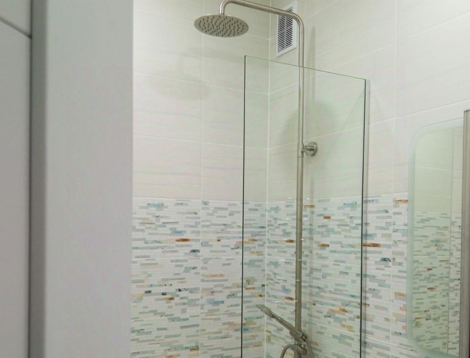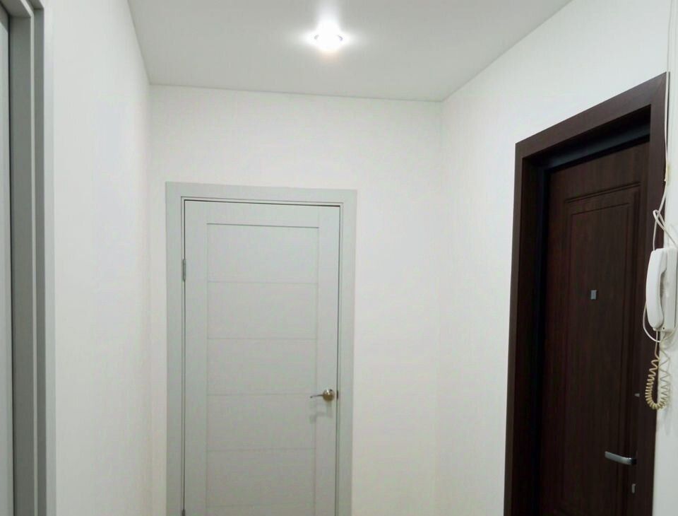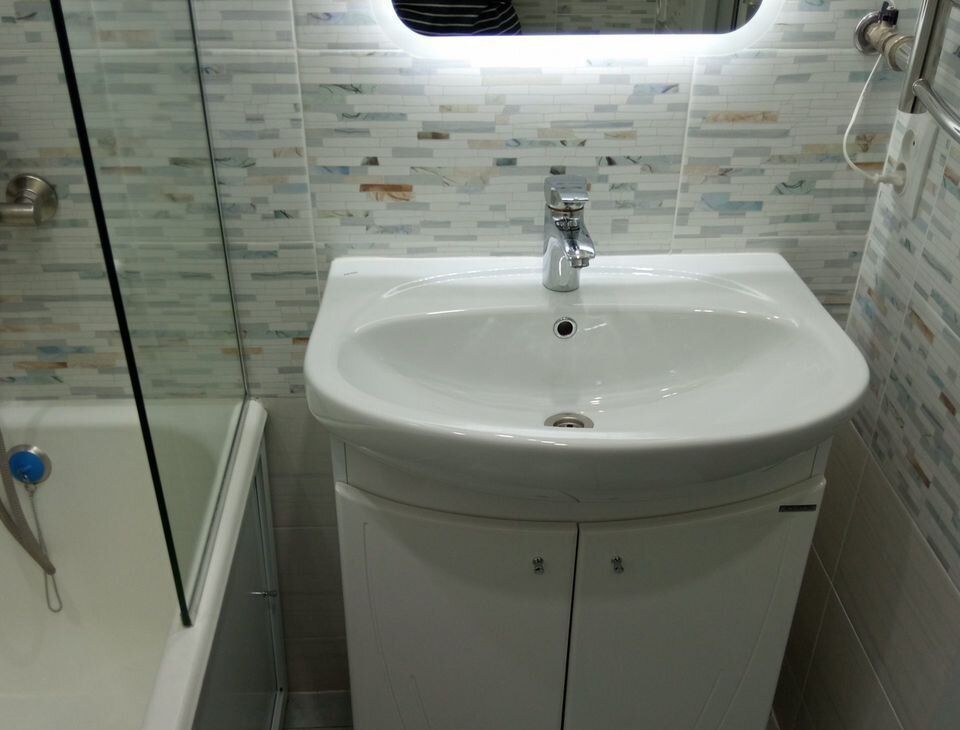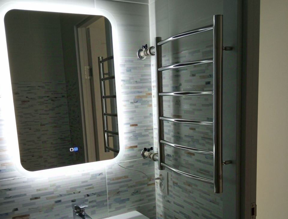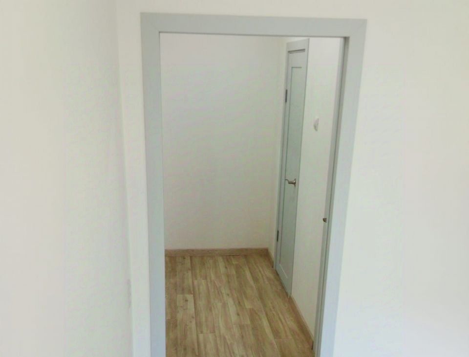 В квартире раздельный санузел (глубокая чугунная ванна 225л, безободковый унитаз, тропический и гигиенический души, подводка для стиральной машины, зеркало с подогревом и подсветкой), полукоммерческий линолеум, застекленный балкон с отделкой, натяжные потолки, скрытые карнизы, ламинированные межкомнатные двери и телескопические наличники, ровный пол без порожков. Сантехника и отделочные материалы новые, стены подготовлены для оклейки обоями. У экрана под ванну раздвижные дверцы из алюминиевой композитной панели толщиной 3 мм. Современный материал из алюминия и полимера, не бьется, не гнется, не желтеет.
