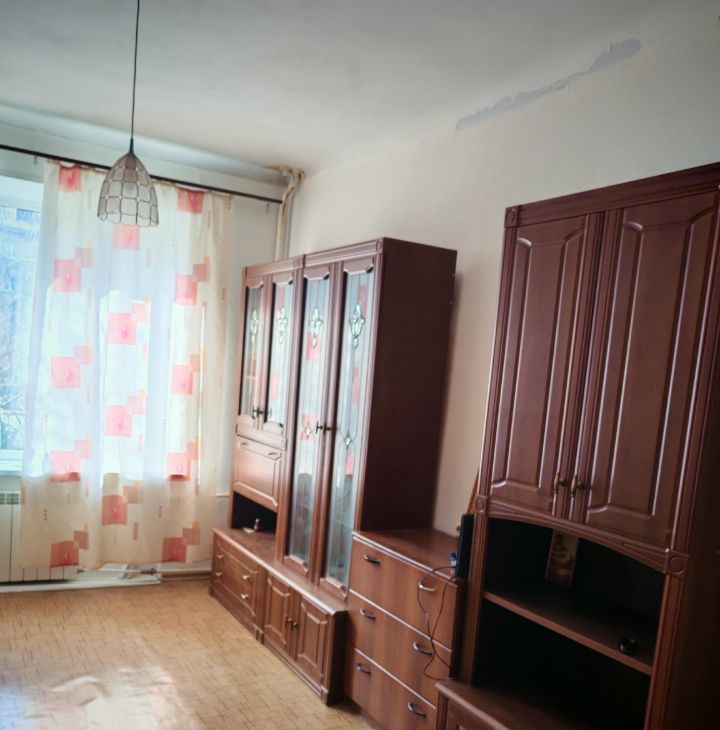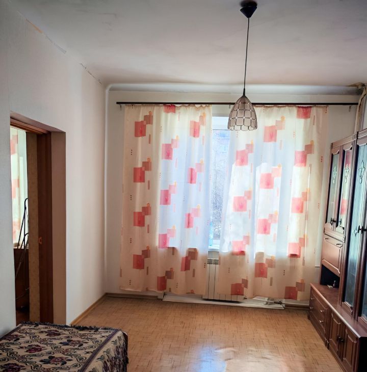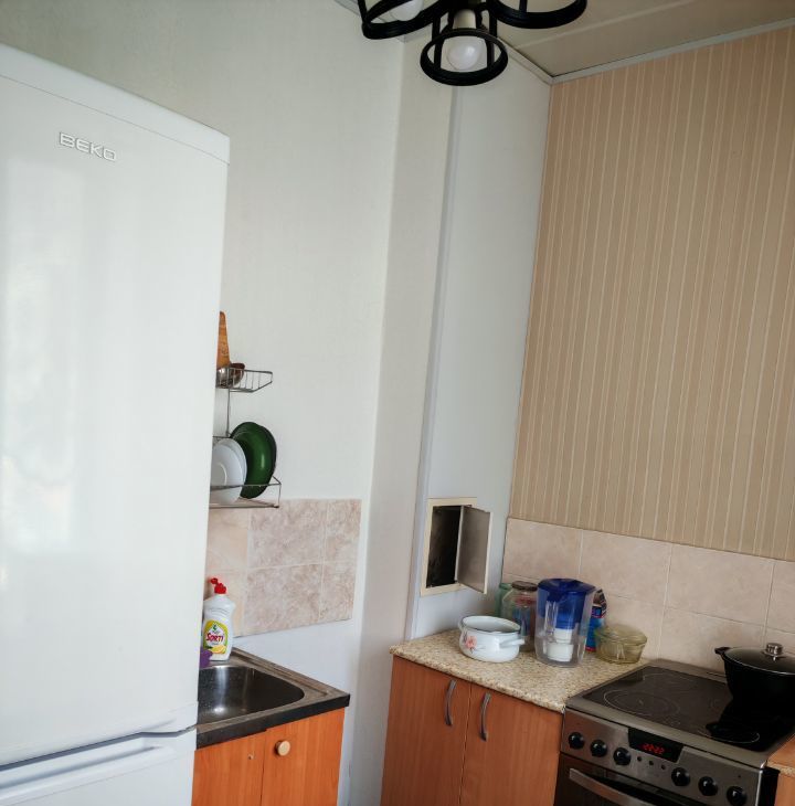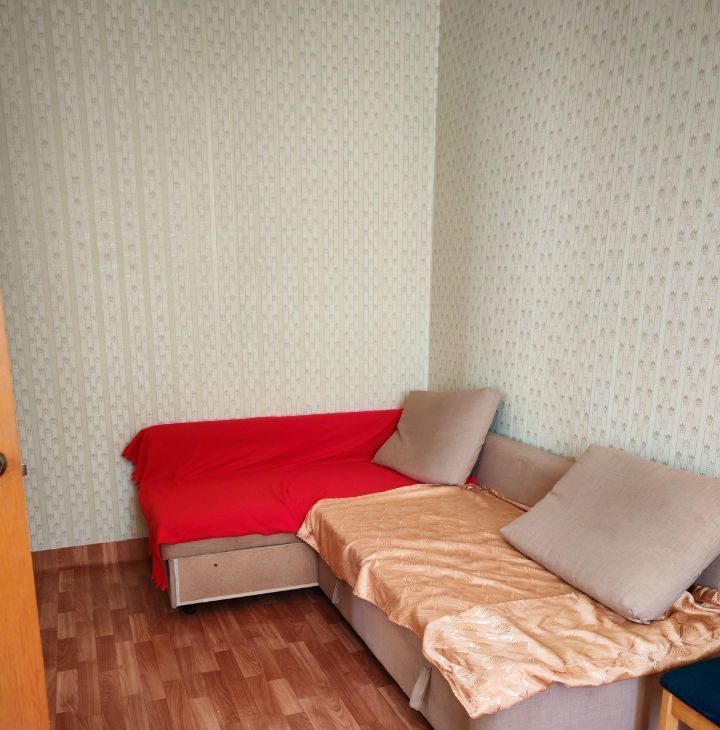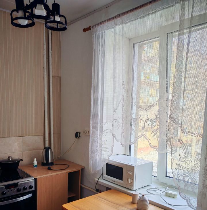 В квартире выполнен косметический ремонт. Обстановка включает необходимую мебель как в комнате, так и на кухне. Из техники есть холодильник и стиральная машина. Ванная комната оборудована ванной, а санузел совмещён. Окна выходят во двор, поэтому в квартире тихо и уютно.