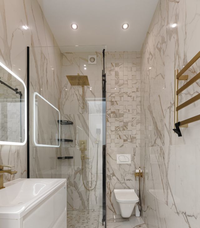 Два сан узла. (Гостевой с душем и второй с ванной).