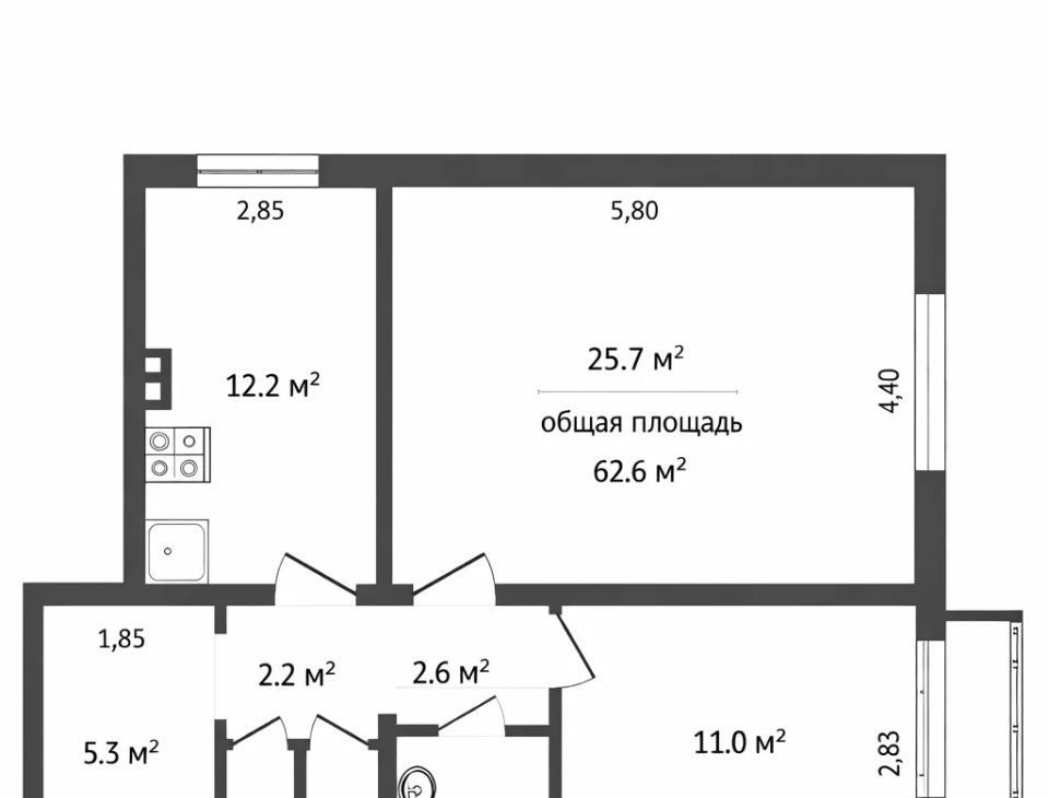 2-к кв. Новосибирская область, Новосибирск ул. Николая Сотникова, 12 (63.5 м²)