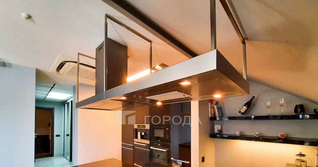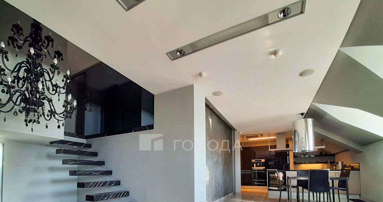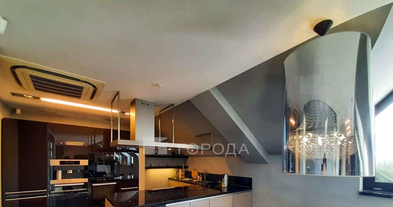 Два уровня, камин, сауна Emotec, сантехника Gessi, Neorest - электронные унитазы. Два санузла, две гардеробные. Системы очистки воздуха и кондиционирования, теплые полы. В цену входит место на подземной теплой парковке. Закрытая территория, пожарно-охранная сигнализация.