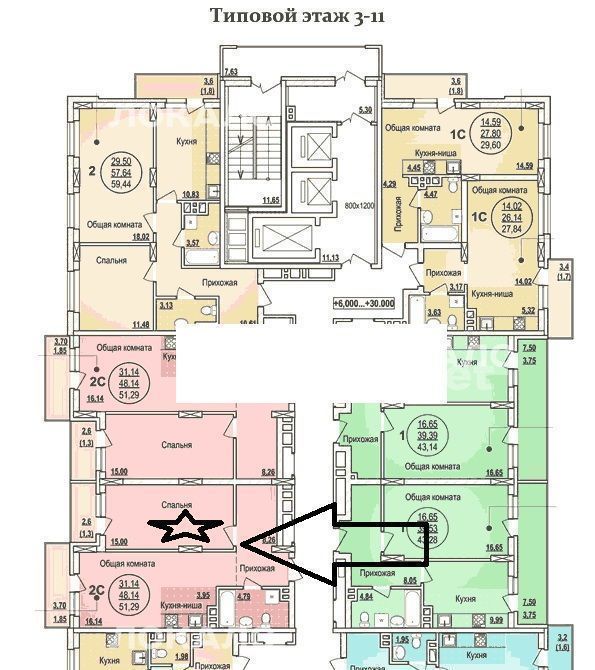 2-к кв. Новосибирская область, Новосибирск ул. Писарева, 44 (51.0 м²)