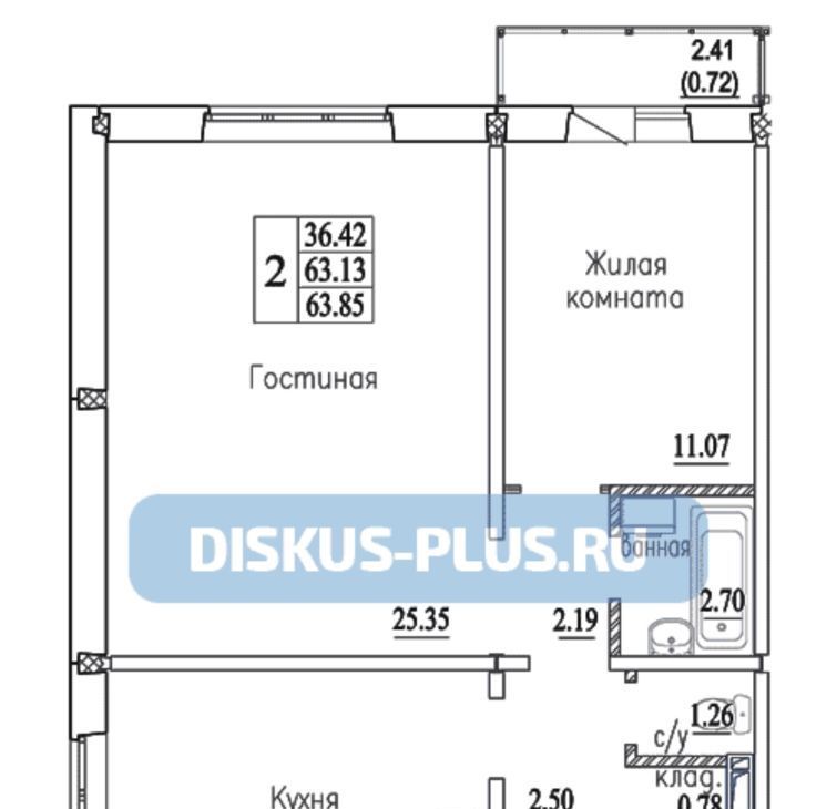 2-к кв. Новосибирская область, Новосибирск ул. Плющихинская, 2 (63.85 м²)