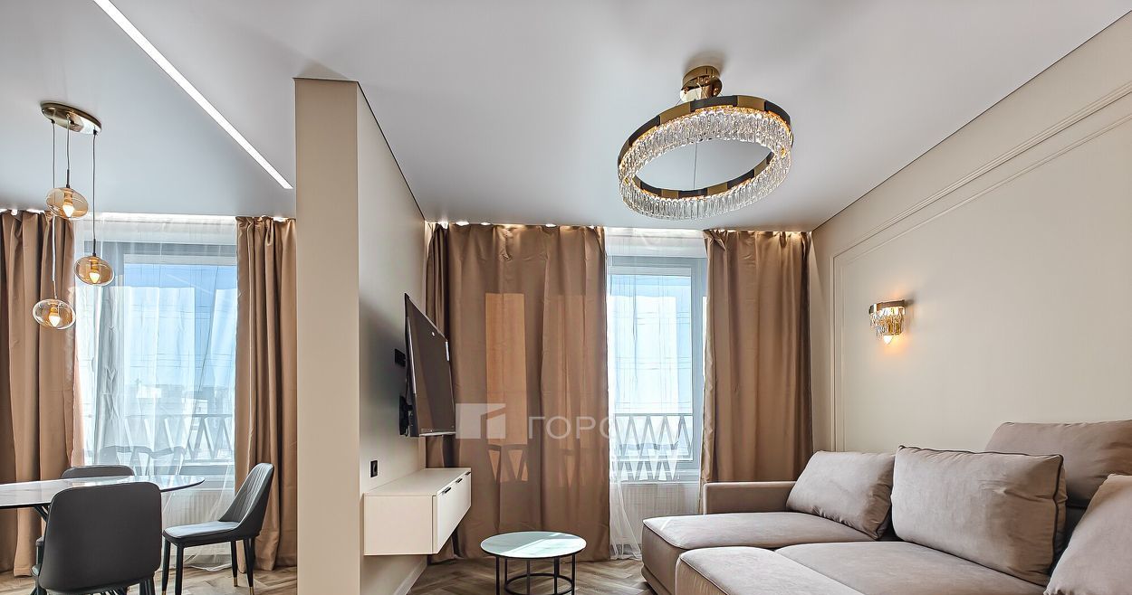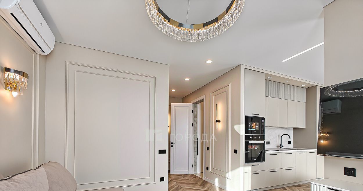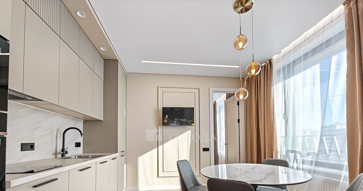 Квартира расположена на 15 этаже 24-этажного кирпично-монолитного дома, построенного в 2024 году. Общая площадь квартиры составляет 59 кв. м, из которых 46 кв. м — жилая площадь, 10 кв. м — кухня. Также вместе с квартирой вы можете снять парковочное место в подземной парковке за 10 000 рублей.