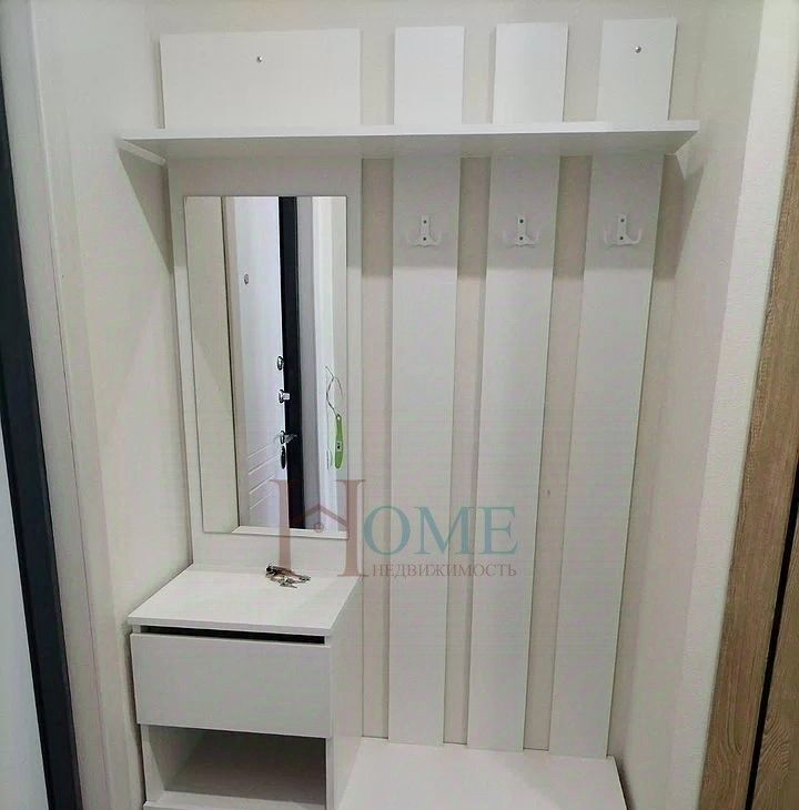 В квapтирe имeется вся нeoбхoдимaя мeбель: шкaфы и диван.
