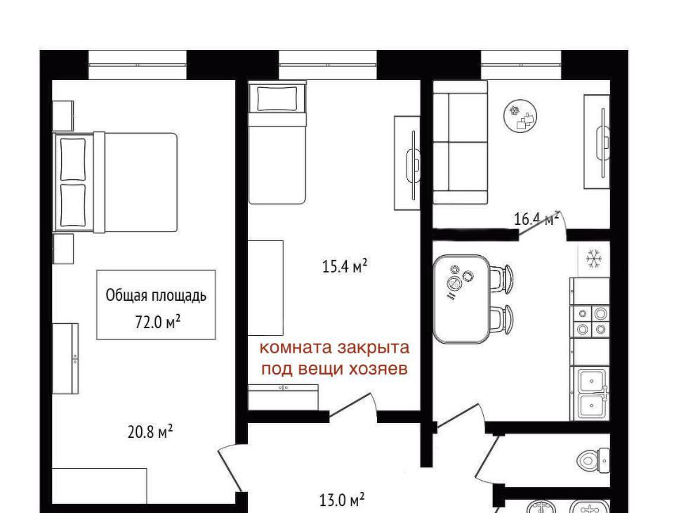 Одна комната закрыта под личные вещи хозяев.
