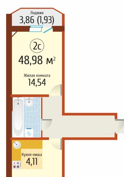 2-к кв. Новосибирская область, Новосибирск ул. В. Высоцкого, 42/3 (51.0 м²)