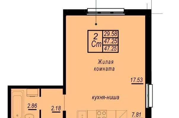 2-к кв. Новосибирская область, Новосибирск ул. Татьяны Снежиной, 42/1 (47.25 м²)