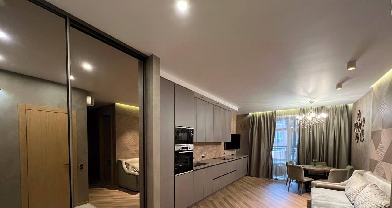 Авторский ремонт - качественная современная отделка, дорогие материалы, стильная кухня со встроенной техникой. Состояние - отличное, полностью готово к заселению.