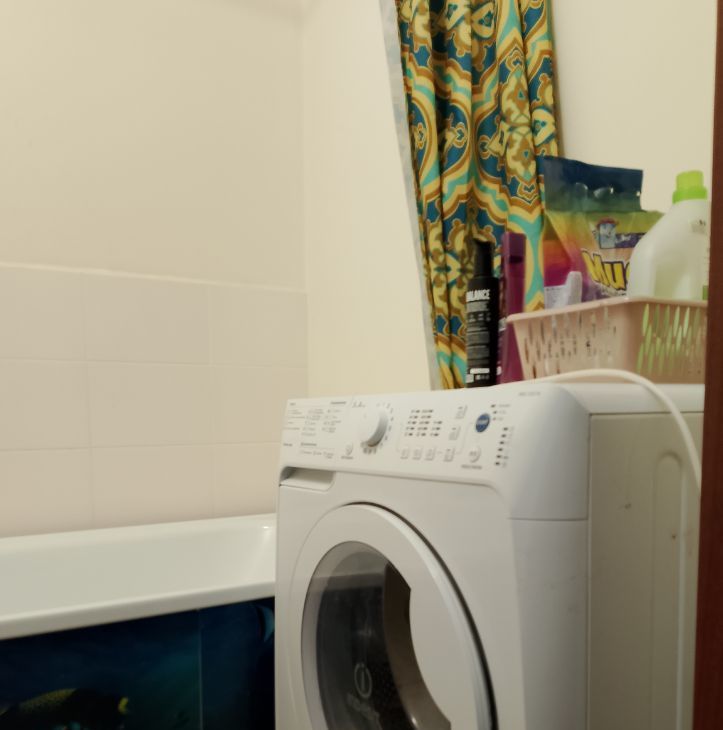 На кухне: электроплита, холодильник, СВЧ печь, стиральная машина, пылесос