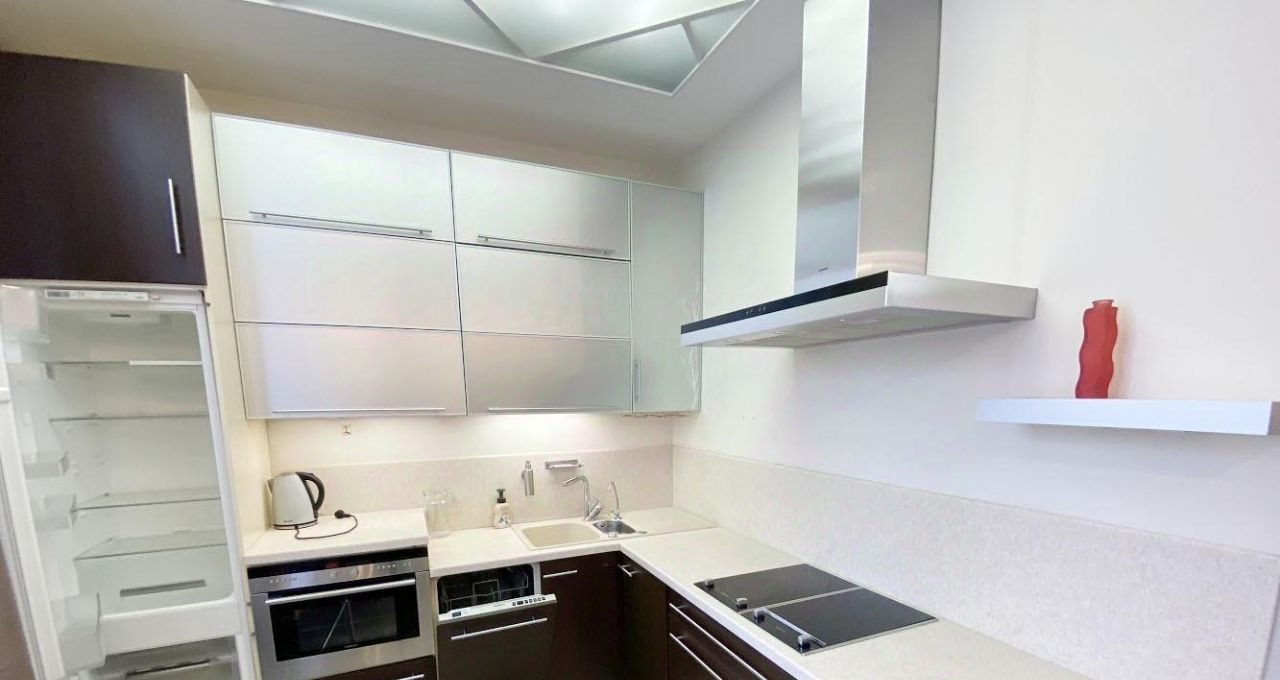 Кондиционер, посудомоечная машина, встроенный холодильник, измельчитель отходов в раковине.