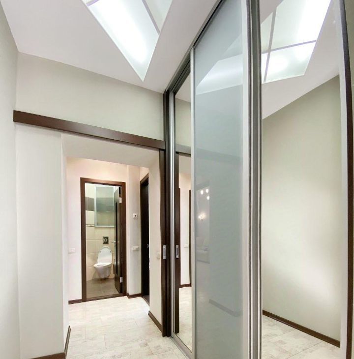 Просторная кухня-гостиная и спальня выходят окнами во двор, и кабинет с окнами на дорогу. Два санузла. Гардеробная.