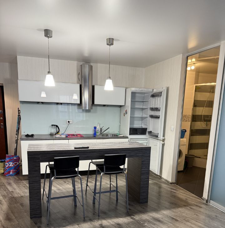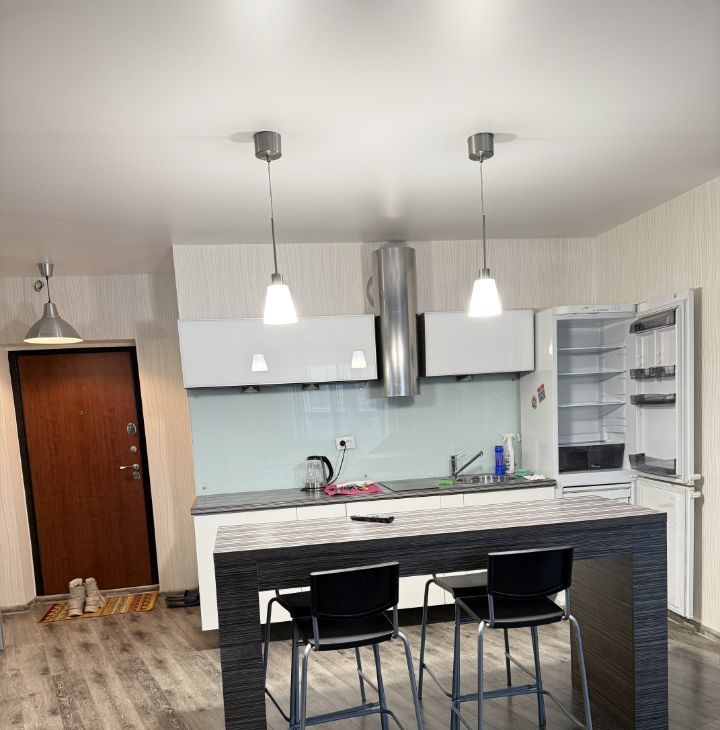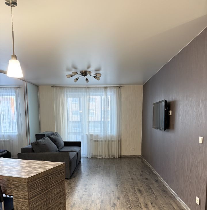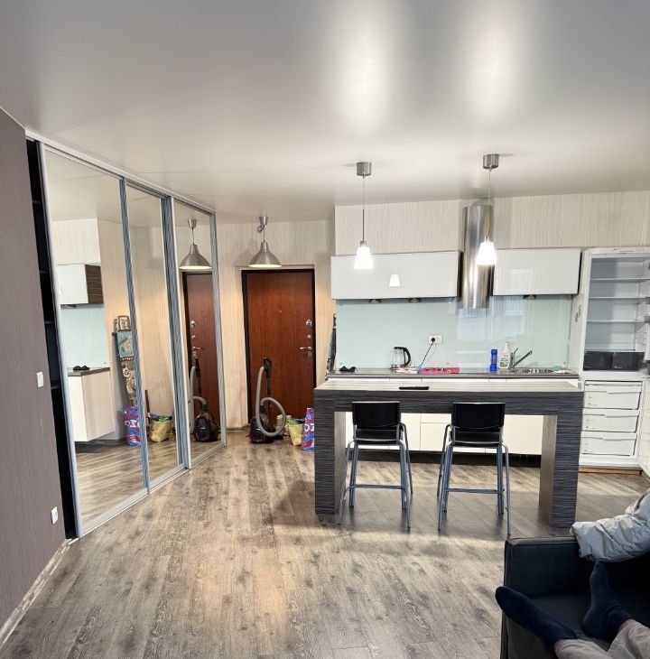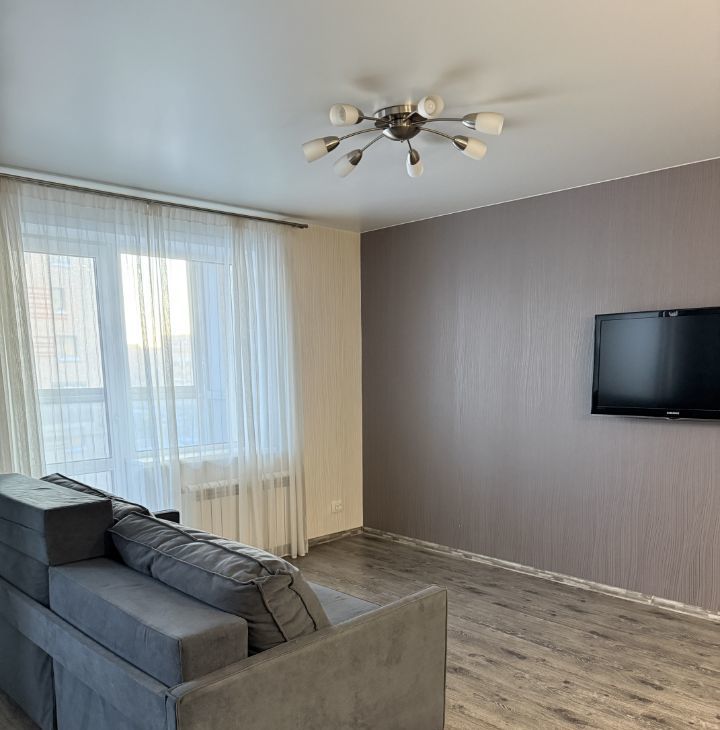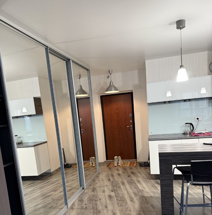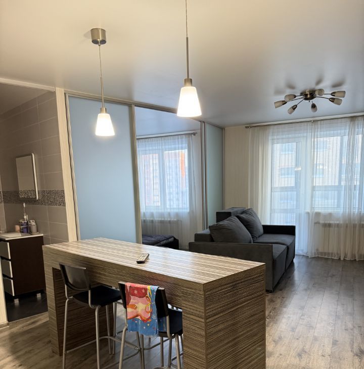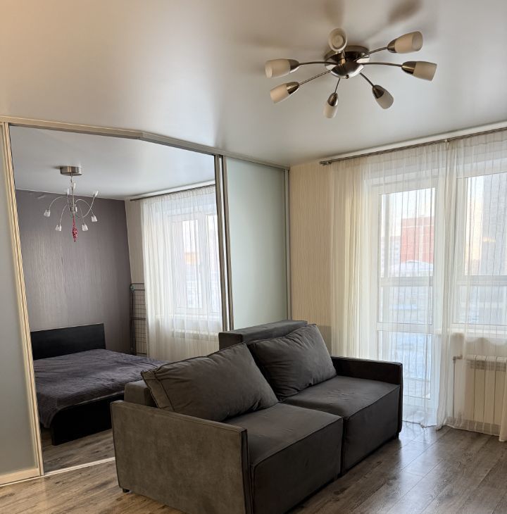Квартира с продуманной планировкой с зонированием и отдельной спальней. В квартире находится вся мебель для комфортного проживания кухня с посудой, столовая зона ( стол со стульями) диван, кровать с тумбой и большой встроенный шкаф для вещей , также холодильник, микроволновая печь, печь -духовка, стиральная машина .