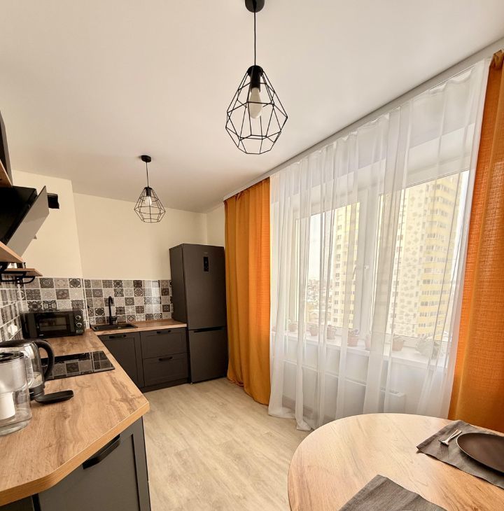 Современный микрорайон, остановка в 5 минутах, вокруг множество магазинов, салонов красоты, студии фитнеса, йоги, развивающие центры, кафе, пекарни, мастерские, аптеки.