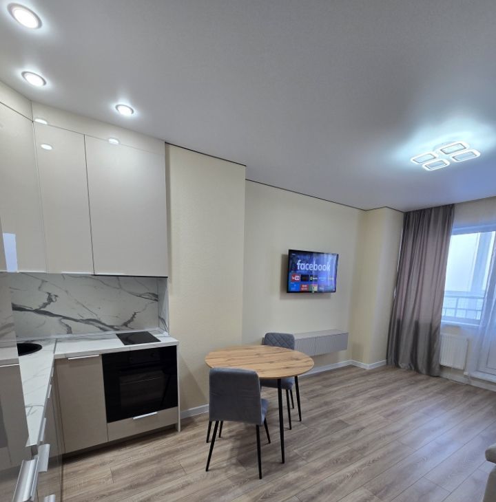 Кухня со всей техникой,(варочная поверхность, духовой шкаф, встроенная вытяжка, посудомоечная машина) стиральная машина, холодильник, водонагреватель, диван на кухне, стол, стулья, телевизор. Двухспальная кровать, хороший матрац, шкаф и т.д. Переделана электрика, с заменой всех выключателей и розеток, стены- немецкие обои Марбург, покрашены на два раза финской краской Тиккурила. Качественные двери на заказ. Сан узел - керамогранит, ванна 180/80,водонагреватель на 50 литров, верхний душ, скрытие люки, зеркало с подсветкой. Никаких обременений. Приобреталась за наличный расчет. Быстрый выход на сделку. Агентствам недвижимости большая просьба, звонить при наличии реального клиента.С компании Этажи не звонить...