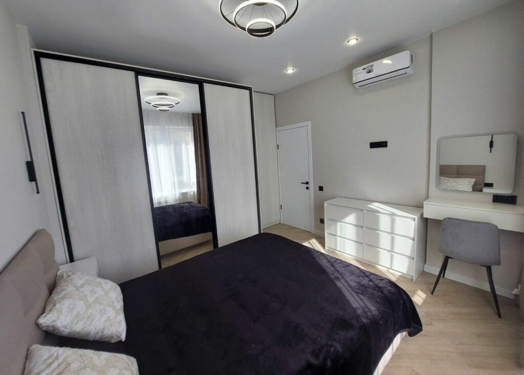 - Укомплектовано всем необходимым: просторная двуспальная кровать, туалетный столик с зеркалом, диван, 3 шкафа - очень много места для хранения, стол, cтулья, кухoнный гарнитуp, комод, сушилка;