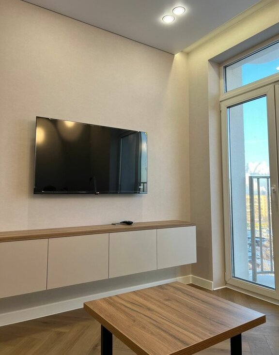 В квартире современный ремонт, есть необходимая мебель и техника: полностью оборудованная кухня (в т.ч. посудомойка), диван, кровать, 2 телевизора, робот-пылесос, встроенная Алиса, высокоскоростной интернет 200м/ секунду.