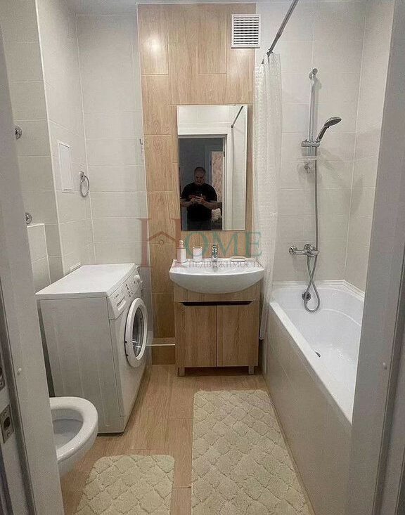 Квартира находится в тихом и зеленом спальном районе, который славится развитой инфраструктурой.