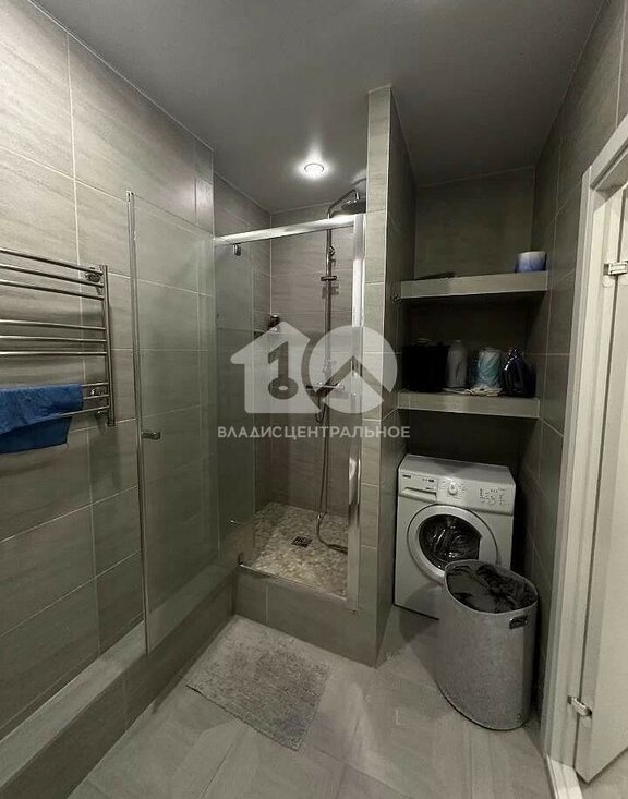 Ванная комната отделана современными материалами, а удобная мебель и аксессуары создают приятную атмосферу.