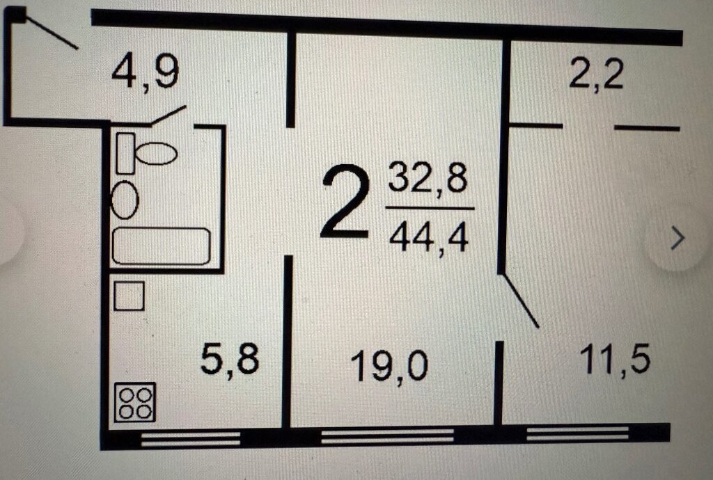 2-к кв. Новосибирская область, Новосибирск ул. Кропоткина, 128/3 (44.0 м²)
