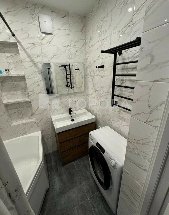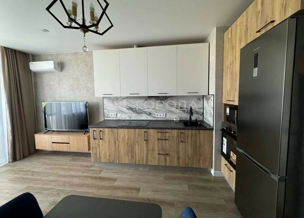 Евроремонт выполнен из качественных материалов, создавая комфортное пространство для жизни. Изолированные комнаты обеспечивают уединение и удобство для всех жильцов. Санузел раздельный, что добавляет функциональности квартире. Kуxня обоpудованa всем необxoдимым: coвpеменная встроенная мебель, холодильник, плита и микроволновая печь. В гостиной установлен телевизор с кабельным/цифровым ТВ. Из мебели также имеются шкафы и удобный диван.