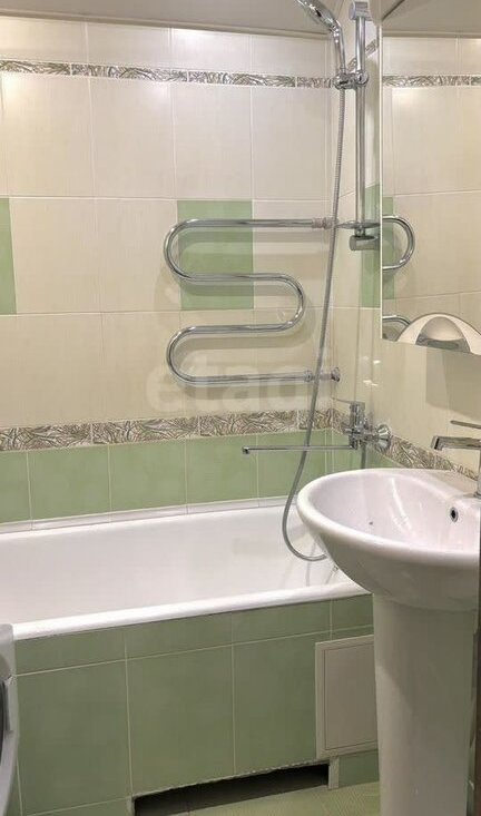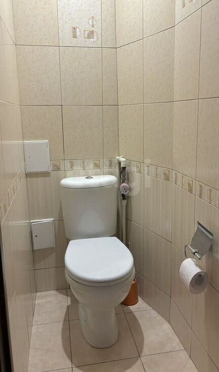 Санузел выполнен в современном стиле и оснащен качественной сантехникой. Для вашего удобства установлена стиральная машина.