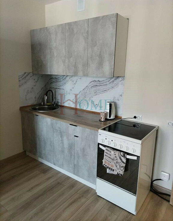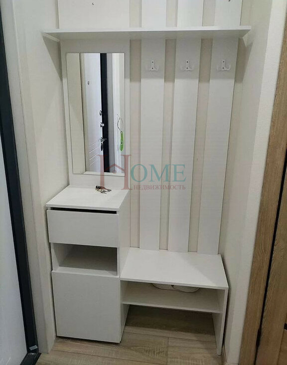 В квapтирe имeется вся нeoбхoдимaя мeбель: шкaфы и диван.