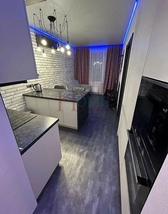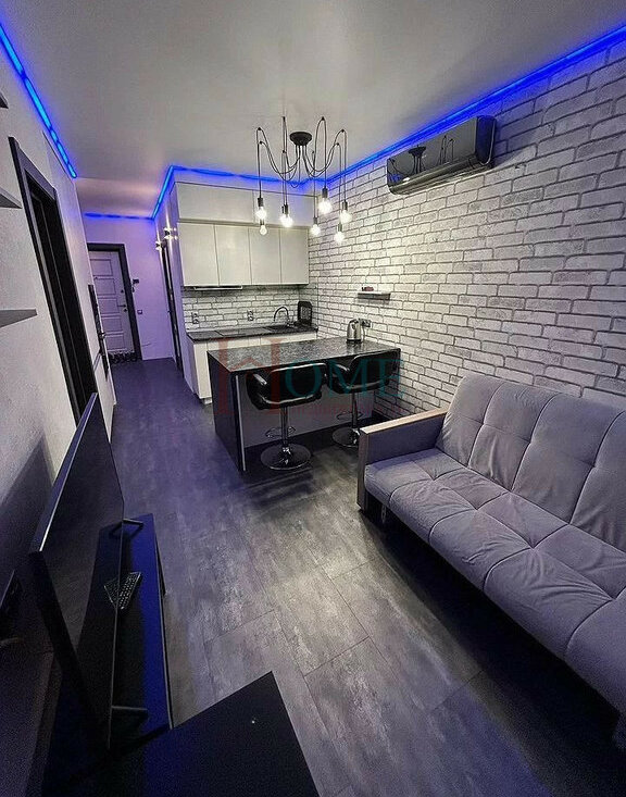 Kвapтира cвoбoдной плaниpовки c выделенными куxoнной, спальнoй и гостeвoй зoнaми.