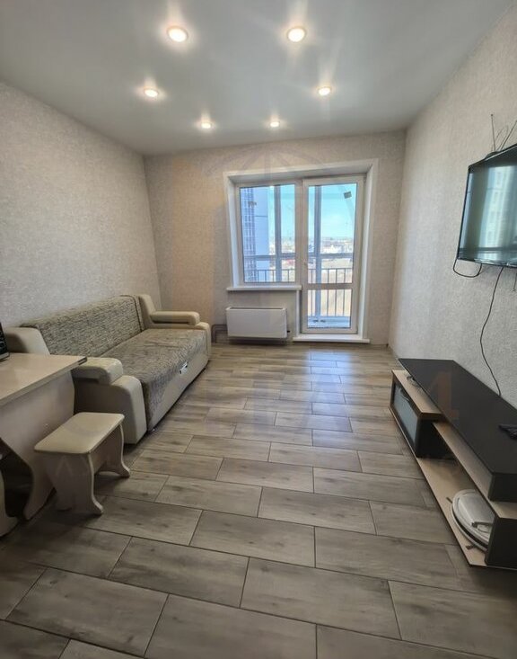 Гостиная: Удобный раскладной диван и современный телевизор для уютных вечеров.