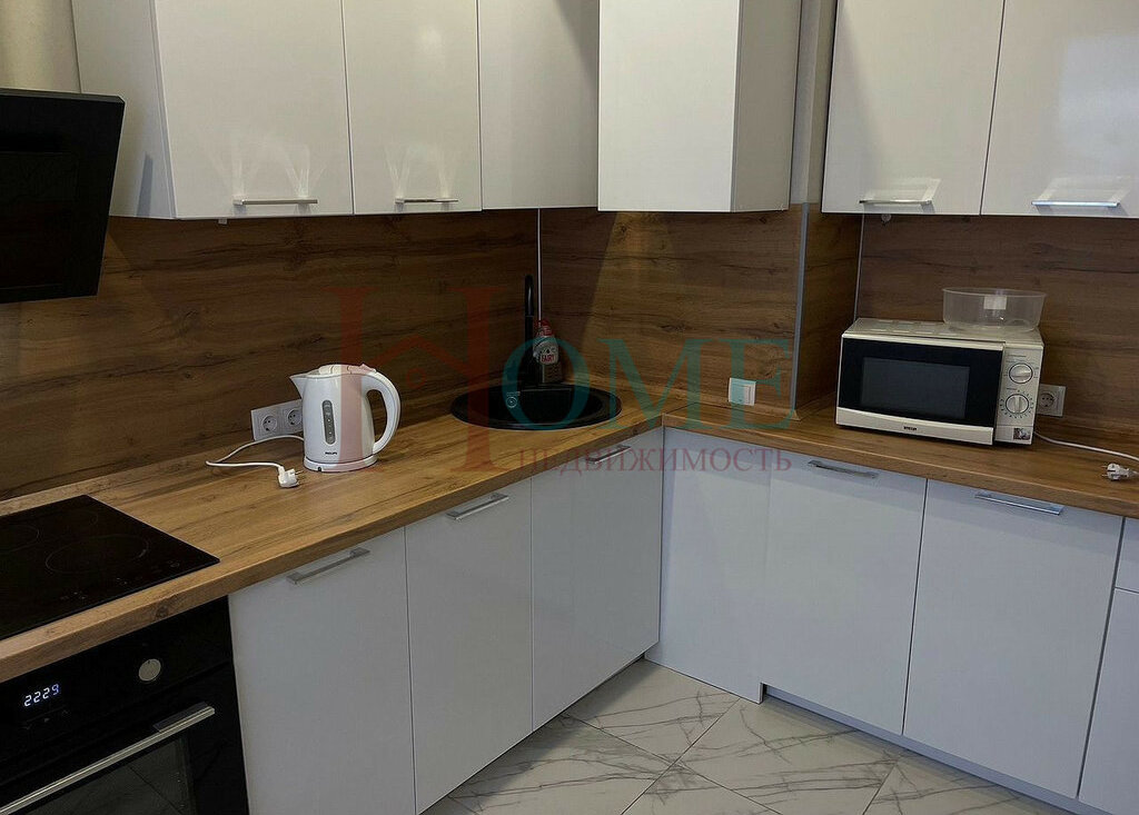 Квартира находится в тихом и зеленом спальном районе, который славится развитой инфраструктурой.