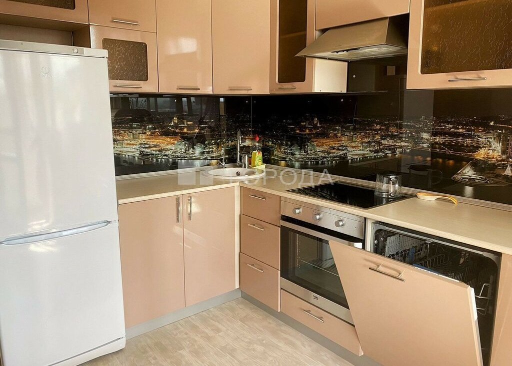 •В кухонный гарнитур встроена посудомоечная машина.