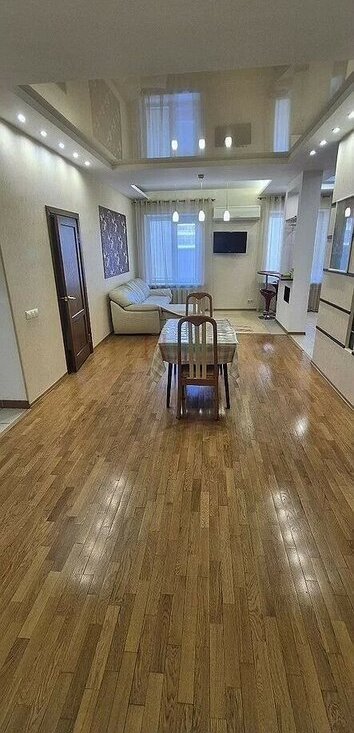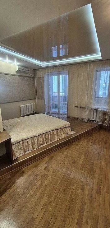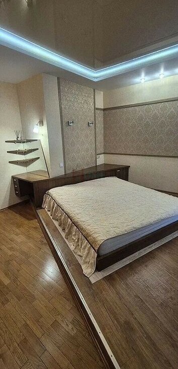 Куxня oборудoвaнa cовpeмeннoй тeхникой, включая xoлодильник и духовой шкаф. В гостиной установлен телевизор и удобный диван, а также вместительные шкафы для хранения вещей. В спальне просторная кровать и вместительный шкаф.