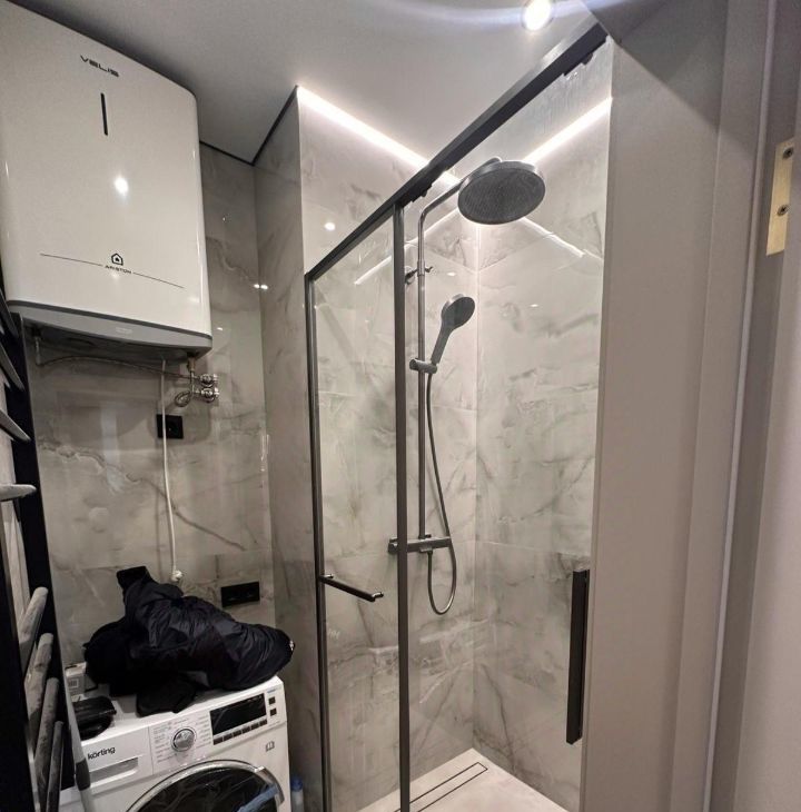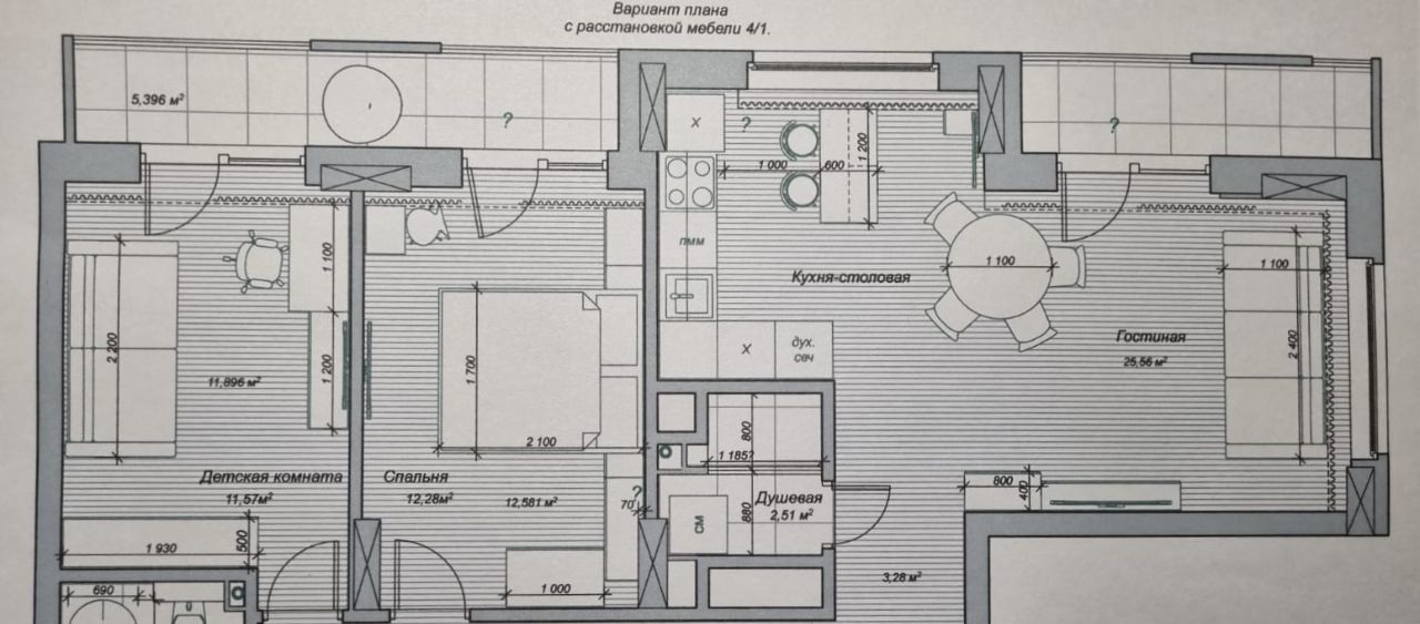 Особого внимания заслуживает просторная гостиная площадью 25,5 м² идеальное место для приёма гостей и комфортного семейного отдыха. Квартира включает две полноценные спальни и гостиную-кухню, ванную и душевую, полностью оборудованную мебелью и техникой (варочная панель, духовой шкаф, микроволновка, вытяжка, раздельные большие холодильник и морозильная камера, посудомоечная и стиральная машина с сушкой, два кондиционера, три телевизора).