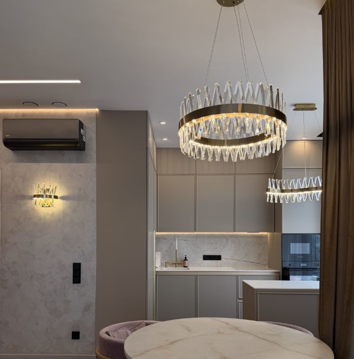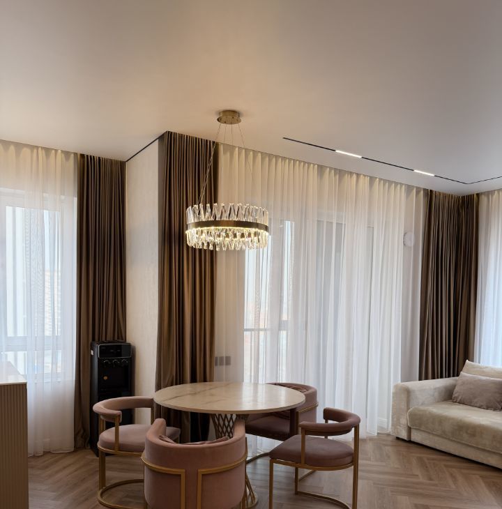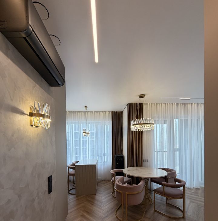 В нашей квартире выполнен дорогостоящий эксклюзивный ремонт из современных высококачественных материалов под чутким руководством дизайнера с авторским надзором. Каждая деталь интерьера продумана для вашего комфорта и стиля. Практически вся мебель выполнялась по индивидуальному заказу.