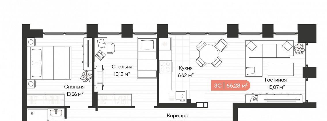 3-комнатная квартира, ЖК Balance (Октябрьский район).