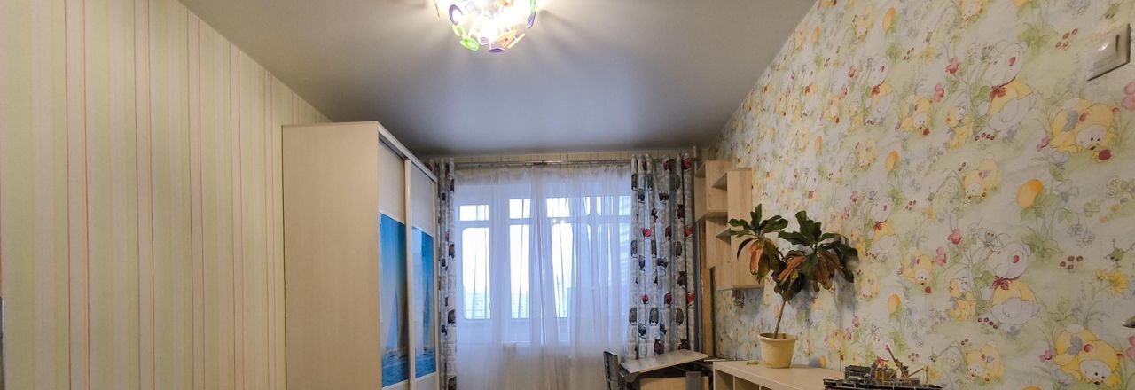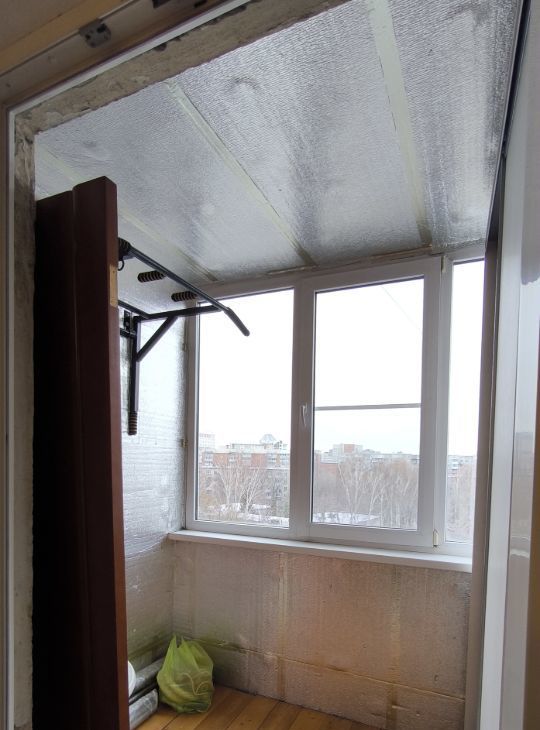 Дaльняя комнaтa c утепленной лоджиeй и турникoм.