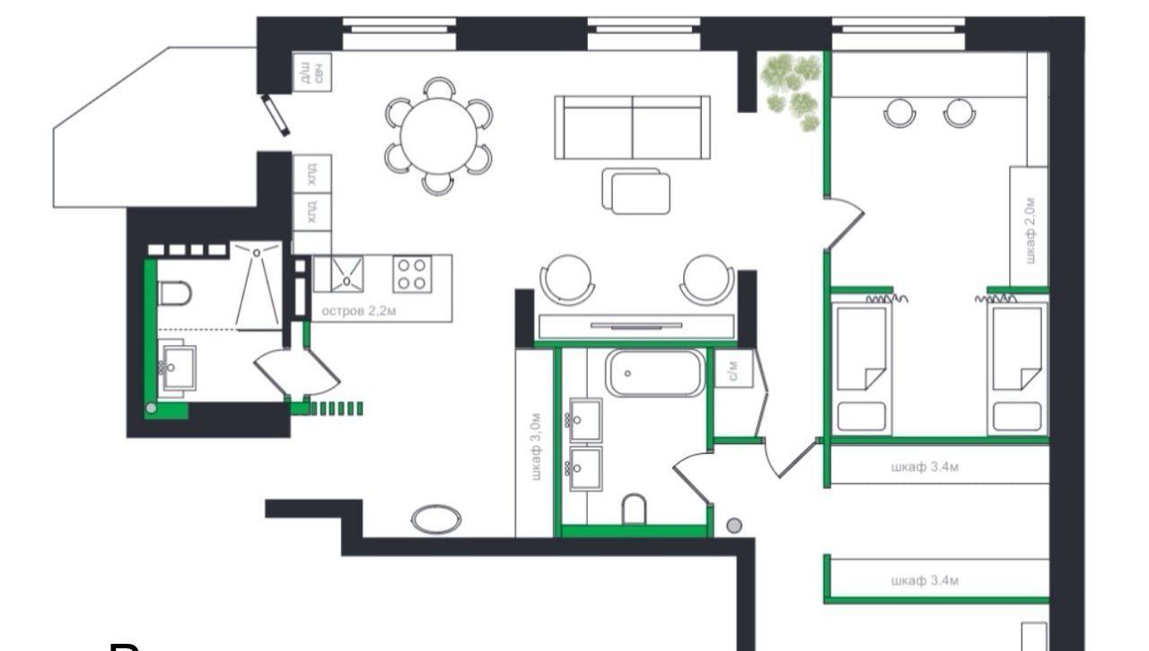• ПРОДУМАННЫЙ КОМФОРТ: планировка позволяет легко организовать: кухню-гостиную для приемов и уютных вечеров в кругу семьи, мастер-спальню с гардеробной, 2 детские, лаунж зону на лоджии с видом на рассветы.